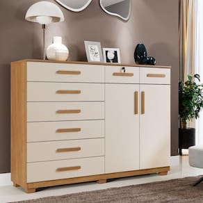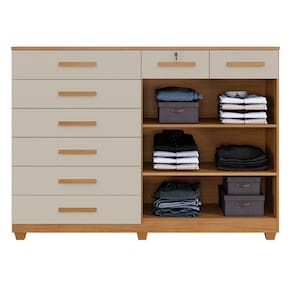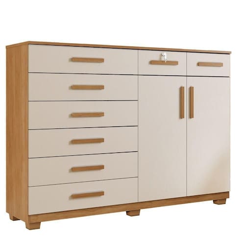 Cômoda Portugal 8 Gavetas 2 Portas 2 Prateleiras Cinamomo Off - Cômoda com 8 Gavetas e 2 Portas