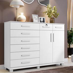 A Cômoda Portugal é a escolha perfeita para completar seu quarto com charme e elegância, oferecendo uma ampla capacidade de organização e um toque sofisticado. Com oito gavetas espaçosas, incluindo uma com chave para segurança, suas corrediças telescópicas garantem suavidade e resistência no uso diário, tornando-a prática e segura. Além disso, conta com duas portas e duas prateleiras internas que formam uma sapateira bem definida, otimizando o espaço de forma eficiente. O tampo robusto de 15 mm assegura durabilidade e resistência. Produzida com a linha MDP Perfect, essa cômoda combina sustentabilidade e inovação tecnológica, garantindo fácil manutenção e longa vida útil. A pintura UV de alta resistência é fácil de limpar e ecologicamente correta, utilizando madeira de reflorestamento, contribuindo para a preservação ambiental.
