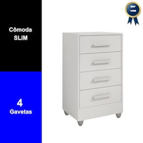 Eleve o nível da decoração e da organização da sua casa com nossa cômoda slim de 4 gavetas na cor Branco, tudo a um preço acessível. Não abra mão da organização e estilo em sua casa, escolha a nossa cômoda slim da linha econômica hoje mesmo!
