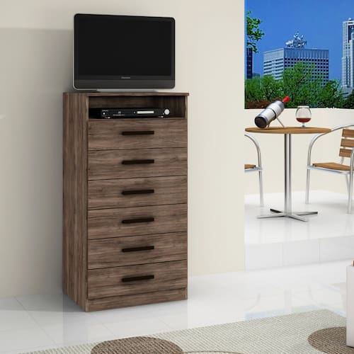 Com seis gavetas espaçosas e corrediças MDP, você terá muito espaço para guardar roupas, eletrônicos, livros e outros itens, mantendo seu ambiente organizado.