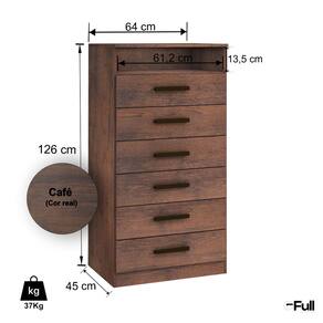 Cômoda Rack Multifuncional para TV com 6 Gavetas Café