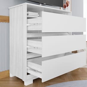 Com 90cm de largura, a Cômoda Rack para Quarto 3 Gavetas Atlas é perfeita para espaços de diferentes tamanhos, adaptando-se facilmente a várias configurações de quarto. Sua versatilidade e elegância contribuem para um ambiente harmonioso e organizado, oferecendo a você o máximo de conforto e funcionalidade. Eleve a decoração do seu quarto com a Cômoda Rack Atlas.