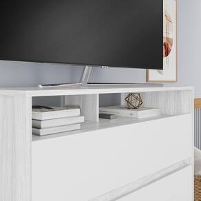 A funcionalidade da Cômoda Rack Atlas é um dos seus principais atrativos. Além de servir como uma excelente cômoda, ela pode ser utilizada como rack, suportando aparelhos eletrônicos e objetos decorativos. Sua estrutura resistente e acabamentos de alta qualidade asseguram durabilidade e um visual sempre impecável, tornando este móvel indispensável para qualquer quarto.