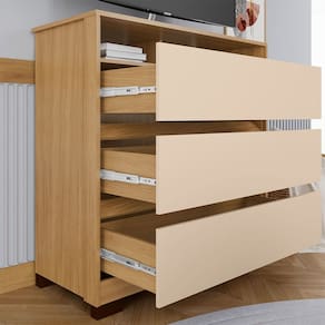 Com 90cm de largura, a Cômoda Rack para Quarto 3 Gavetas Atlas é perfeita para espaços de diferentes tamanhos, adaptando-se facilmente a várias configurações de quarto. Sua versatilidade e elegância contribuem para um ambiente harmonioso e organizado, oferecendo a você o máximo de conforto e funcionalidade. Eleve a decoração do seu quarto com a Cômoda Rack Atlas.