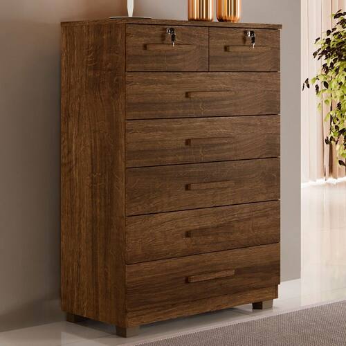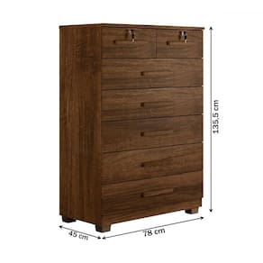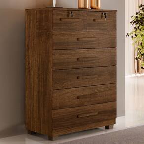 O(a) Cômoda Realce 7 Gavetas Imbuia - Loja é produzido em MDP na escala de brilho Fosco, e possui um grau de dificuldade de montagem: Médio.