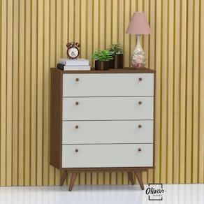 Cômoda Retrô 35 Conhaque / Off White - Olivar MóveisCômoda Retrô 35, possui gavetas com corrediças metálicas, puxadores de madeira, possui pés palito em madeira trazendo o design retrô.Tipo: CômodaModelo: Retrô 35Cor: Conhaque/Off WhiteDimensões (AxLxP): 101cm x 82cm x 45,5cmPeso do Produto Montado: 46,5kgCARACTERÍSTICASEscala de brilho: AcetinadoMaterial da estrutura: MDP 15 MM e MDF 15/25 MMAcabamento: Pintura UVNecessita de montagem? SimQuantidades de gavetas: 4Tipo de Corrediças: MetálicasQuantidade de puxadores: 8Material dos puxadores: MadeiraTipo dos pés: Pé palito em madeiraAltura os pés: 17cmSuporta até (KG): 30KgPossui manual de montagem: SimRecomendação de limpeza: Com pano umedecido. Não aplicar lustra móveis.Volumes: 2Garantia: 3 mesesATENÇÃOIMAGENS MERAMENTE ILUSTRATIVAS, PODENDO HAVER ALGUMA VARIAÇÃO DE COR DEPENDENDO DE CADA TELA OU MONITOR.CÃmoda Retrà 35 Conhaque / Off White - Olivar MÃveis