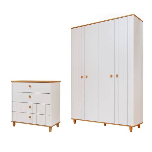 Pés torneados em madeira, puxadores em madeira, cantos arredondados.