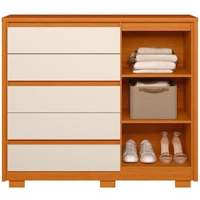 Cômoda Ripada Sapateira 5 Gavetas 1 Porta Duello Cinamomo/off White