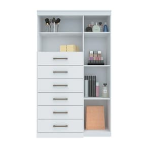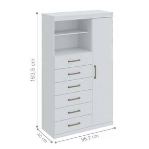 Além de possuir 06 amplas gavetas com corrediças metálicas com seus puxadores em ABS, possui 2 Prateleiras e 1 Porta com Prateleiras.
