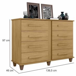 A Cômoda Geórgia possui um design elegante e charmoso, com excelente espaço e pode ser utilizado tanto no quarto, quanto no closet. Características: Estrutura em MDF e MDP 8 Gavetas Tampo e base em MDF 18mm Corrediças telescópicas Puxadores em MDF