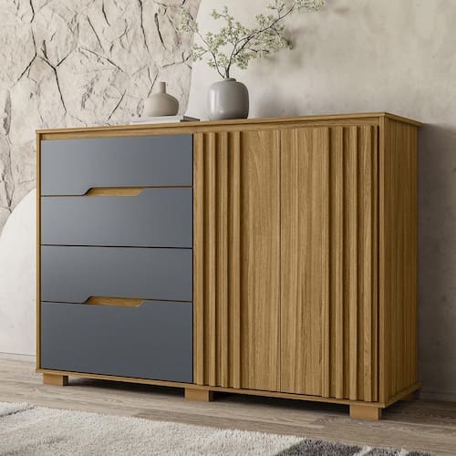 Cômoda Sapateira 02 Portas 04 Gavetas Texas Freijó Cinza Moval - Marrom Chocolate