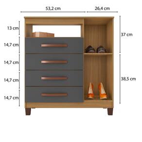 Materiais: Estrutura em MDP de 12mm, corrediças metálicas, puxadores, dobradiças metálicas.