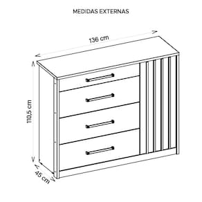 Dimensões do produto montado: Altura: 110,5 cm Largura: 136 cm Profundidade: 45 cm Peso: 63kg