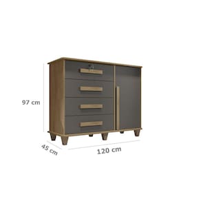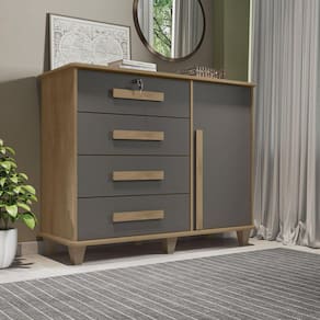 A Cômoda Sapateira Grécia é prática e moderna ela é perfeita para o seu quarto, com um amplo espaço de 4 gavetas para guardar roupas e até sapatos ela conta com uma sapateira lateral. Produzida em: MDP e MDF com pintura UV fosco, tampo e base de MDF de 18 mm, puxadores de MDF, 4 gavetas com corrediças telescópicas e 1 porta sapateira. Garantia do produto de 90 dias. Medidas do produto montado Largura: 120cm, Altura: 97cm, Profundidade: 45cm. Produto Montado: Sim Acabamento da Gaveta: Pintura UV Acabamento da Porta: Pintura UV Acabamento da Prateleira: Pintura UV Acabamento dos Pés: Pintura Altura dos Pés: 5 cm Altura Máxima dos Pés: 5.0000 Ambiente Principal: Quarto codigo_ean: 7909903206973 Complexidade da Montagem: Média: pode ser montado por mais de uma pessoa e/ou necessite de maior conhecimento para montagem Cor: Cinamomo/Grafite Cor do Produto: Cinamomo/Grafite Cor Flex: Não Cor Interna: Cinamomo Escala de Brilho: Fosco Escala de Brilho da Gaveta: Fosco Escala de Brilho da Porta: Fosco Escala de Brilho da Prateleira: Semi-Fosco Gaveta com Chave: Sim Itens Inclusos: 1 Cômoda, Kit Ferragens e Manual de Montagem Linha ou Coleção: Grécia Manual de Montagem e Instalação: https://product-hub-prd.madeiramadeira.com.br/817945/documents/797aceb4-a756-4292-a88f-24843dd8874a506414cmodagrecia.pdf Material da Gaveta: MDF/MDP Material da Porta: MDF/MDP Material da Prateleira: MDF/MDP Material do Fundo: MDF Material do Puxador da Gaveta: MDF Material do Puxador da Porta: MDF Material dos Pés: Plástico Material Principal: MDF/MDP Montagem Flex: Não Necessita Montagem: Sim Origem do Produto: Nacional Pés Reguláveis: Não Peso: 51,7 kg Peso Máximo por Gaveta: 5 kg Peso Máximo por Prateleira: 8 kg Possui Espelho: Não Possui Nichos: Não Possui Pés: 06 Possui Portas: Sim Possui Prateleiras: Sim Possui Rodízio: Não Quantidade de Gavetas: 04 Gavetas Quantidade de Prateleiras: 02 Prateleiras Recomendações de Uso, Manutenção e Limpeza: Usar pano macio, seco ou ligeiramente umedecido com água. Não utilizar produtos químicos pois podem danificar o produto. Sapatas Niveladoras: Não Sistema de Montagem: Parafuso, Minifix e Cavilhas. Suporta Até (kg): 45 kg Tipo de Corrediça: Metálica Telescópica Tipo de Corrediça da Gaveta: Metálica Telescópica Tipo de Dobradiça/Corrediça da Porta: Alumínio Tipo de Porta: Bater Tipo de Puxador da Gaveta: Externo Tipo de Puxador da Porta: Externo undefined: 475379 Ean: 7909903206973