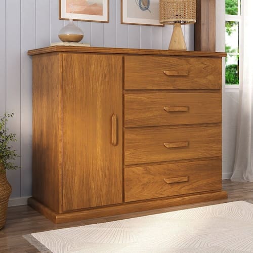 Possui 4 gavetas amplas excelente para organização, além de um espaço com uma prateleira. Acabamento da Gaveta: Verniz Acabamento da Porta: Verniz Acabamento da Prateleira: Verniz Ambiente Principal: Quarto Cor: Mogno Mel Cor do Produto: Mogno Mel Escala de Brilho: Fosco Escala de Brilho da Porta: Fosco Escala de Brilho da Prateleira: Fosco Gaveta com Chave: Não Itens Inclusos: 1 Cômoda Sapateira Manual de Montagem e Instalação: https://cdn2.madeiramadeira.com.br/atributo/natalia-moveis/1931780-5699-17151126464246.pdf Material da Gaveta: Eucalipto Material da Porta: Eucalipto Material da Prateleira: Eucalipto Material do Fundo: Madeira Material dos Pés: Eucalipto Material Principal: Madeira Maciça Necessita Montagem: Não Origem do Produto: Nacional Peso: 65 Peso Máximo por Gaveta: 4,3 kg Peso Máximo por Prateleira: 0.5 Possui Espelho: Não Possui Nichos: Não Possui Pés: Rodapé Possui Portas: Sim Possui Prateleiras: Sim Possui Rodízio: Não Quantidade de Prateleiras: 02 Prateleiras Recomendações de Uso, Manutenção e Limpeza: Utilizar pano levemente umidecido e flanela Sapatas Niveladoras: Não Suporta Até (kg): 15 Tipo de Corrediça da Gaveta: Telescópica Tipo de Dobradiça/Corrediça da Porta: Metálica Tipo de Madeira Maciça: Eucalipto Tipo de Porta: Bater Tipo de Puxador da Gaveta: Externo Tipo de Puxador da Porta: Externo Marca: Moveis Nathalia