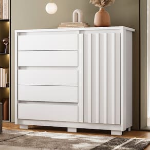 Com 5 gavetas, você terá espaço de sobra para organizar suas roupas, acessórios e itens pessoais, ou até mesmo para guardar peças de cama, mesa e banho. As corrediças telescópicas garantem um deslize suave e silencioso ao abrir e fechar as gavetas, facilitando o acesso aos seus pertences. Além disso, é uma cômoda sapateira já que conta om 1 porta que oferece espaço extra. Outro ponto alto é que essa cômoda possui tampo e moldura de 25mm, o que torna esse móvel durável e resistente. Para completar, os pés oferecerem estabilidade e segurança, ao passo que o acessório de fixação na parede evita tombamentos acidentais.