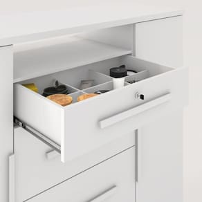 A Cômoda Sapateira Versátil é ótima opção para organizar tudo o que você precisa. Possui quatro gavetas amplas e espaçosas, sendo a 1ª com divisórias e chave, todas com corrediças telescópicas que permite maior abertura. Possui uma porta de cada lado, ambas com duas prateleiras para você acomodar objetos como sapatos, caixas, livros, bolsas... Base e tampo em MDP de 25mm com espaço para aparelhos eletrônicos e TV. Dispõe de seis rodízios de Ø50mm cromados que proporciona mobilidade ao produto. Produto Montado: Sim Acabamento da Gaveta: Pintura UV Acabamento da Porta: Pintura UV Acabamento da Prateleira: Pintura UV Altura dos Pés: 5 Altura Máxima dos Pés: 5.0000 Ambiente Principal: Quarto codigo_ean: 7909903285084 Complexidade da Montagem: Média: pode ser montado por mais de uma pessoa e/ou necessite de maior conhecimento para montagem Cor: Branco Cor do Produto: Branco Cor Interna: Branco Escala de Brilho: Fosco Escala de Brilho da Gaveta: Semi-Fosco Escala de Brilho da Porta: Semi-Fosco Escala de Brilho da Prateleira: Semi-Fosco Gaveta com Chave: Sim Informações Complementares: Tampo e base com 25mm de espessura Itens Inclusos: 1 Cômoda Sapateira, Kit Ferragens e Manual de Montagem Linha ou Coleção: Versátil Manual de Montagem e Instalação: https://product-hub-prd.madeiramadeira.com.br/832718/documents/829b446a-8343-457b-ae52-d600283ef2a0204cOmodasapateiraversatil.pdf Material da Gaveta: MDP Material da Porta: MDP Material da Prateleira: MDP Material do Fundo: HDF Material do Puxador da Gaveta: MDF Material do Puxador da Porta: MDF Material dos Pés: Plástico Material Principal: MDP Necessita Montagem: Sim Origem do Produto: Nacional Peso: 68,5 kg Peso Máximo por Gaveta: 3 kg Peso Máximo por Prateleira: 3 kg Possui Espelho: Não Possui Nichos: Não Possui Pés: 06 Possui Rodízio: Sim Recomendações de Uso, Manutenção e Limpeza: Limpar com flanela ou pano macio seco, não utilizar produtos abrasivos, desengordurantes, álcool ou qualquer outro produto químico. Não expor o produto diretamente à luz solar e à umidade Rodízio com Trava: Não Sapatas Niveladoras: Não Sistema de Montagem: Parafusos auto atarraxantes, cola, cavilhas, pregos Suporta Até (kg): 50 kg Tipo de Corrediça da Gaveta: Metálica Telescópica Tipo de Dobradiça/Corrediça da Porta: Metálica Tipo de Porta: Bater Tipo de Puxador da Gaveta: Externo Tipo de Puxador da Porta: Externo