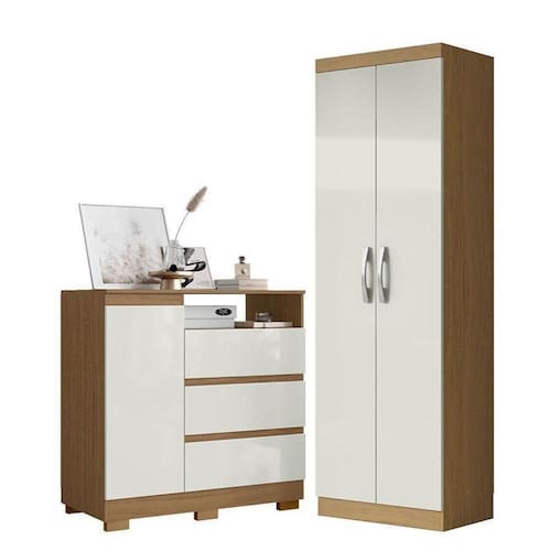 MDPCômoda Sapateira 2014143 e Armário Multiuso New 2000192 Atacama Off White - Aramóveis
