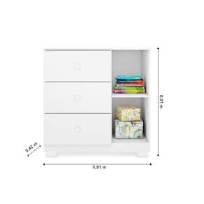 Cômoda Sapateira 3 Gavetas 1 Porta Organizadora Infantil ANE Detalhe Nuvem Bco - Phoenix Baby