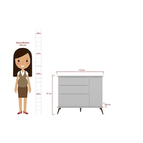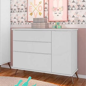 Cômoda Sapateira 3 Gavetas 1 Porta Retrô Infantil Com Pés Melinda Cza - Phoenix Baby