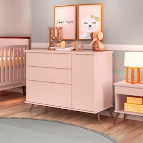Cômoda Sapateira 3 Gavetas 1 Porta Retrô Infantil Com Pés Melinda Rsê - Phoenix Baby