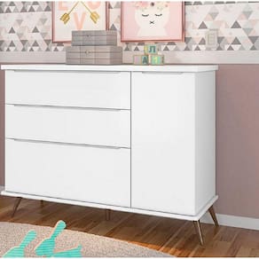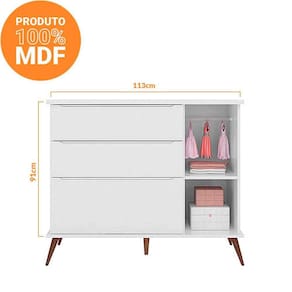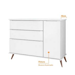 Cômoda Sapateira 3 Gavetas 1 Porta Retrô Infantil Pé Palito Melinda Bco - Phoenix Baby