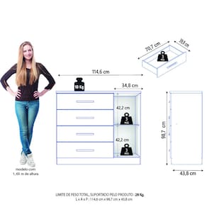 ITENS INCLUSOS: 1 Cômoda, 1 Manual de montagem, 1 Kit Parafusos.