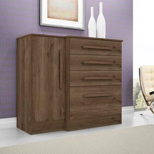 ? Gavetas com corrediças metálicas e excelente profundidade; ? Puxadores em MDF resistentes e com alto padrão de acabamento; ? Porta com dobradiças metálicas; ? Bordas do tampo com um ótimo acabamento em perfil PVC; ? Pés opcionais para evitar o contato do produto com o chão; ? Embalagem feita com papelão revestido por plástico, com isomanta e com BUP's (proteção de cantos) para garantir a qualidade do produto; ? Excelente acabamento revestido em pintura UV, que dá maior destaque à cor; ? Sistema anti-tombamento para evitar riscos de acidentes; ? Estrutura produzida com materiais de alta qualidade.