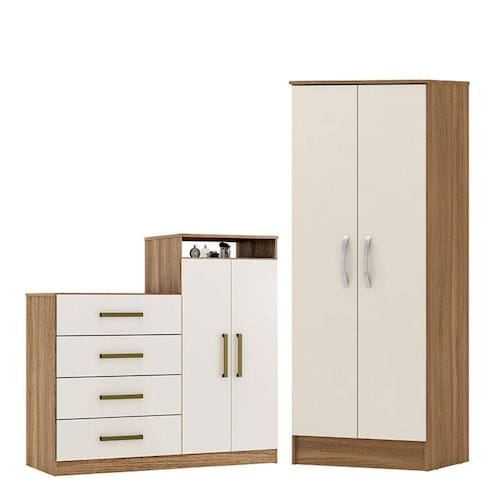 Cômoda Sapateira Áurea e Armário Multiuso Viena Amêndola Touch Off White Demóbile