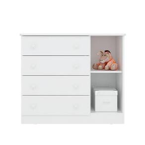 Ela possui 4 gavetas e 1 repartição que serve como sapateira, conferindo assim uma boa organização.