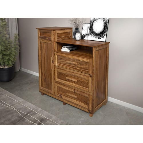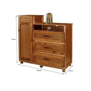 Cômoda Cuiabá, possui uma porta em MDF de 15 mm, três gavetas, porta joias e espelho, ideal para organizar seus pertences. Produzido com madeira Pinus (reflorestada) e HDF, corrediças metálicas, dobradiça de pressão, 5 pés de madeira maciça, puxadores de madeira maciça, o tampo em MDF de 15 mm, prateleira inferior interna em MDF de 9 mm. Inovação para compor o seu lar. Produto Montado: Sim Acabamento da Gaveta: Impressão Acabamento da Porta: Impressão Acabamento da Prateleira: Impressão Acabamento dos Pés: Verniz Altura do Espelho: 30 cm Altura dos Pés: 12 Altura Máxima dos Pés: 12.0000 Ambiente Principal: Quarto codigo_ean: 7909903495063 Complexidade da Montagem: Baixa: pode ser montado por uma pessoa sozinha Cor: Ypê Cor do Produto: Ypê Escala de Brilho: Semi-Brilho Escala de Brilho da Gaveta: Semi-Brilho Escala de Brilho da Porta: Semi-Brilho Escala de Brilho da Prateleira: Semi-Fosco Espessura do Espelho: 2 mm Fita Integrada: Sim Formato do Espelho: Retangular Gaveta com Chave: Não Itens Inclusos: 1 Cômoda, Kit Ferragens e Manual de Montagem. Largura do Espelho: 25 cm Linha ou Coleção: Cuiabá Manual de Montagem e Instalação: https://product-hub-prd.madeiramadeira.com.br/879234/documents/9e371e2d-4bb4-400c-ab09-2194292da88d591301manual.pdf Material da Gaveta: Madeira/HDF Material da Porta: Madeira/HDF Material da Prateleira: MDF Material do Fundo: Duratree Material do Puxador da Gaveta: Poliestireno/Cromado Material do Puxador da Porta: Poliestireno Material dos Pés: Madeira Maciça Material Principal: Madeira Maciça Necessita Montagem: Sim Origem do Produto: Nacional Peso: 38,5 kg Peso Máximo por Gaveta: 5 kg Peso Máximo por Prateleira: 10 kg Possui Espelho: Sim Possui Nichos: 01 Possui Pés: 05 Possui Portas: Sim Possui Prateleiras: Sim Possui Rodízio: Não Quantidade de Espelho: 01 Quantidade de Gavetas: 03 Gavetas Quantidade de Prateleiras: 01 Prateleira Recomendações de Uso, Manutenção e Limpeza: Deve-se tirar a poeira cuidadosamente com um pano seco ou espanador, para que não haja o perigo do pó sob a pressão e movimento do pano arranhar a superfície. Não usar produtos abrasivos e esponjas duras e ásperas. Sapatas Niveladoras: Não Sistema de Montagem: Parafusos Suporta Até (kg): 80 kg Tipo de Corrediça da Gaveta: Metálica Simples Tipo de Dobradiça/Corrediça da Porta: Metálica Tipo de Fixação do Espelho: Fita Dupla Face Tipo de Madeira Maciça: Pinus Tipo de Madeira Maciça dos Pés: Pinus Tipo de Porta: Bater Tipo de Puxador da Gaveta: Externo Tipo de Puxador da Porta: Externo Ean: 7909903495063