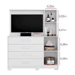 cômoda para quarto possui 4 gavetas e 1 porta com prateleira interna, já na parte superior apresenta 1 porta com chave, espelho e um painel para tv de até 43 polegadas! Ou seja, é um móvel super prático para oferecer ainda mais aconchego no nosso cantinho de descanso, o