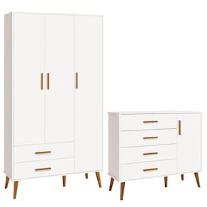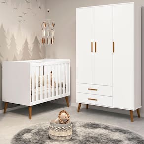 Funcional e encantadora, possui 4 gavetas com puxadores em madeira, 1 porta com prateleira interna, sistema antitombamento e amplo espaço para organizar as roupas do bebê.