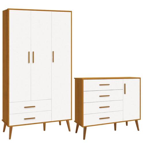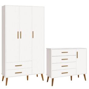 Cômoda Sapateira e Guarda-Roupa Isis Reller Retrô 3 Portas - Nude