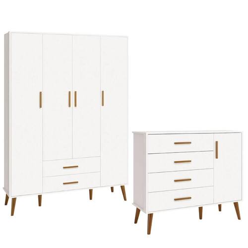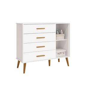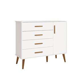 Funcional e encantadora, possui 4 gavetas com puxadores em madeira, 1 porta com prateleira interna, sistema antitombamento e amplo espaço para organizar as roupas do bebê.
