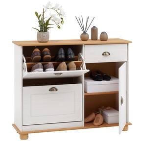 Organize seus sapatos com estilo e elegância com a nossa Sapateira em Madeira Maciça. Com capacidade para até 12 pares de sapatos, esta sapateira é perfeita para quem valoriza praticidade e organização. Com duas portas basculantes, uma porta com prateleira interna e uma gaveta, você pode armazenar seus sapatos de forma segura e conveniente.