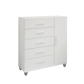 Com uma porta e cinco gavetas espaçosas e corrediças MDP, você terá muito espaço para guardar roupas, sapatos, eletrônicos, livros e outros itens, mantendo seu ambiente organizado.