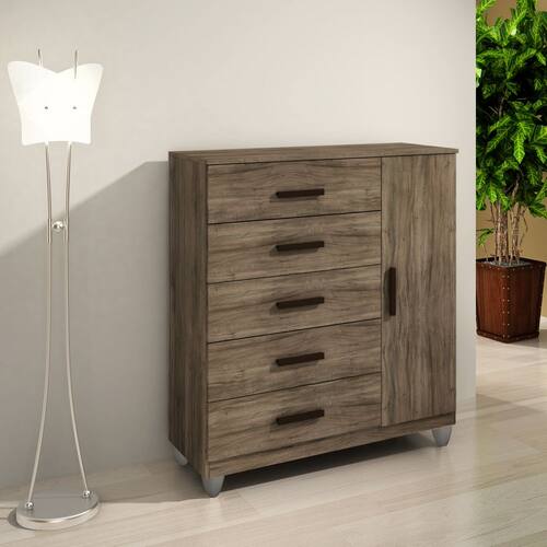 Com uma porta e cinco gavetas espaçosas e corrediças MDP, você terá muito espaço para guardar roupas, sapatos, eletrônicos, livros e outros itens, mantendo seu ambiente organizado.