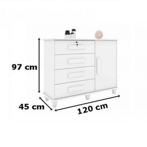 A Cômoda Grécia - RV Móveis tem o espaço que você precisa para manter suas roupas e acessórios organizados. Possui ainda 4 gavetas com corrediças metálicas, uma porta para sapateira e acabamento em poliéster com secagem U.V.. Este modelo economiza espaço da casa pois é possível guardar tanto os utensílios quanto os calçados em um único móvel.Dimensões do Produto Montado:Altura: 97 cmLargura: 120 cmProfundidade: 45 cmObservações:- 04 Gavetas com corrediças telescópicas- Chave em uma das gavetas- 01 Porta com 02 praleteiras móveis- Puxadores em MDF- Tampo e base em MDF 20mm- 06 Pés- Pintura Ultravioleta com acabamento brilhante.Marca: RV MóveisModelo: GréciaReferência: CD145BRWATENÇÃO: Não nos responsabilizamos pela montagem deste produto. Aconselhamos a contratação de um profissional.