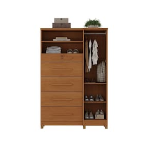 Este elegante móvel combina design refinado com praticidade para atender todas as suas necessidades de organização. Características Principais: Estrutura Robusta: Feita com tampo em MDP de 25mm, garantindo durabilidade e resistência; Armazenamento Inteligente: Conta com 1 porta e 5 gavetas espaçosas, equipadas com corrediças telescópicas para um deslizar suave e eficiente; Organização Premium: A 1ª gaveta possui divisórias internas para manter pequenos itens organizados e vem com chave para maior segurança; Detalhes Elegantes: Puxadores em MDF que complementam o design sofisticado do móvel; Cabideiro Metálico: Ideal para pendurar acessórios ou itens que precisam estar sempre à mão; Acabamento Impecável: O acabamento interno é igual ao externo, proporcionando um visual uniforme. Acabamento da Gaveta: Pintura Texturizada UV Acabamento da Porta: Pintura Texturizada UV Acabamento da Prateleira: Pintura Texturizada UV Ambiente Principal: Quarto Complexidade da Montagem: Alta: deve ser montado por um montador especializado Cor: Marrom Cor do Produto: Marrom Cor Interna: Cinamomo Escala de Brilho: Fosco Escala de Brilho da Gaveta: Fosco Escala de Brilho da Porta: Fosco Escala de Brilho da Prateleira: Fosco Gaveta com Chave: Sim Itens Inclusos: 1-Cômoda Imperial 1P 5G + Manual de Montagem Linha ou Coleção: Imperial Manual de Montagem e Instalação: https://product-hub-prd.madeiramadeira.com.br/926460/documents/7f278366-c8bc-49de-bfe7-8cbea2a07b0f2171260573817219317439293.pdf Material da Gaveta: MDP Material da Porta: MDP Material da Prateleira: MDP Material do Fundo: MDP Material do Puxador da Gaveta: MDF Material do Puxador da Porta: MDF Material dos Pés: Plástico Material Principal: MDP Montagem Flex: Não Necessita Montagem: Sim Origem do Produto: Nacional Pés Reguláveis: Não Peso: 80,5 kg Peso Máximo por Gaveta: 3 kg Peso Máximo por Prateleira: 5 kg Possui Espelho: Não Possui Nichos: Não Possui Pés: 06 Possui Portas: Sim Possui Prateleiras: Sim Possui Rodízio: Não Quantidade de Gavetas: 05 Gavetas Quantidade de Prateleiras: 03 Prateleiras Recomendações de Uso, Manutenção e Limpeza: Limpar com flanela ou pano macio seco, não utilizar produtos abrasivos, desengordurantes, álcool ou qualquer outro produto químico. Não expor o produto diretamente à luz solar e à umidade Sapatas Niveladoras: Não Sistema de Montagem: Parafusos auto atarraxantes, cola, cavilhas, pregos, minifix Suporta Até (kg): 47 kg Tipo de Corrediça da Gaveta: Metálica Telescópica Tipo de Dobradiça/Corrediça da Porta: Metálica Tipo de Porta: Bater Tipo de Puxador da Gaveta: Externo Tipo de Puxador da Porta: Externo