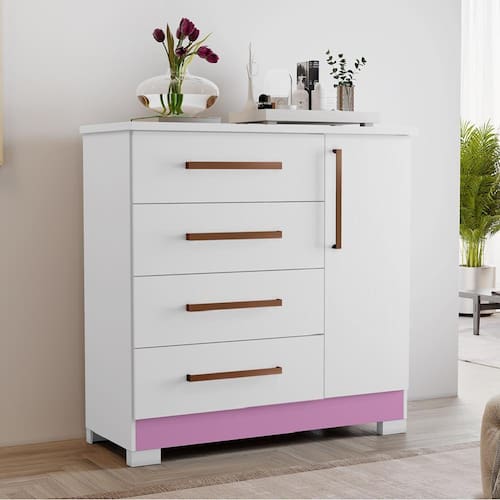 A Cômoda Infantil Gabi é perfeita para você que procura praticidade e organização para o quarto do seu bebê . Preparada para acomodar seus calçados, acessórios e pertences! Com seu designer sofisticado contém 4 gavetas com corrediças telescópicas, 2 prateleiras internas, e puxadores em ABS. Bonita e ampla, além de ser excelente para a decoração, atende todas as suas necessidades!