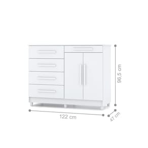 Produzido em MDP, Possui 2 Portas, Pés de madeira opcional na montagem, Puxadores em MDF e ainda conta com 5 Gavetas.