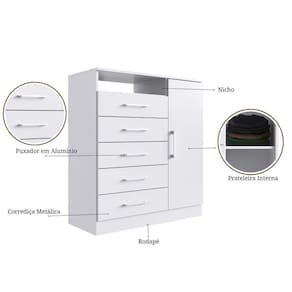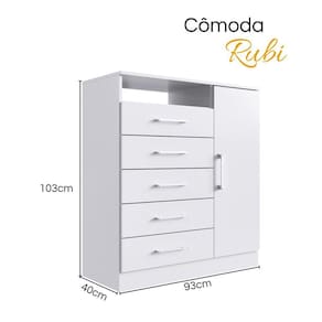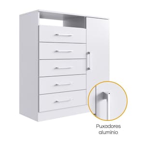 Agregue ao seu quarto a Cômoda Sapateira Rubi 5 Gavetas 1 Porta 1 Prateleira Megasul, formada de design convidativo e atraente, perfeita para guardar com muita praticidade e organização suas roupas, perfumes, maquiagens, bijuterias, o que desejar. Aproveite e experimente! Compre aqui! A estrutura do Cômoda Sapateira Rubi é em MDP 12MM, as portas e frente de gaveta são em 15MM, além disso possui Pintura em UV que garante maior resistência, durabilidade e acabamento. MEDIDAS:- Altura: 103 cm | Largura: 93 cm |Profundidade: 40 cm DADOS TÉCNICOS:- Referência Comercial: CM7051- Peso do Produto: 34 kg - Dobradiças e corrediças: Metálica - Puxadores em alumínio - Capacidade de montagem: Média MATERIAL:- Material da estrutura: MDP de 12 e 15mm- Pintura: UV LIMPEZA- Limpar com flanela ou pano macio seco, não utilizar produtos abrasivos, desengordurantes, álcool ou solvente.- Limpeza diária com flanela seca para remoção do pó.- Nunca utilizar materiais abrasivos como esponja sintética, esponja de aço, saponáceos.- Secar rapidamente qualquer líquido.INFORMAÇÕES ADICIONAISGarantia de 3 meses.As imagens são ilustrativas, não acompanham objetos de decoração e eletrônicos.Pode haver alguma diferença de tonalidade entre a imagem e o produto real, por conta do tratamento de imagens e a calibração de cores do seu monitor.A montagem será de responsabilidade do comprador, não nos responsabilizamos, no ato da entrega, por subir escadas/elevadores ou transporte por guincho em apartamentos.Eventuais despesas são de responsabilidade do comprador.Confira as dimensões deste produto e certifique-se de que passará normalmente por supostos elevadores, portas, escadas e/ou corredores de sua residência.