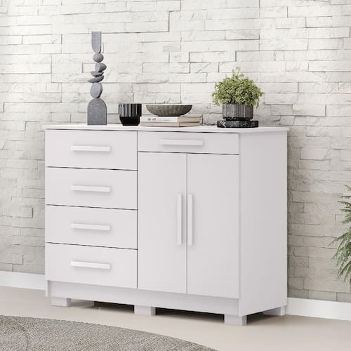 MDPCômoda Sapateira 5 Gavetas 2 Portas Sirius Branco - Vila Rica