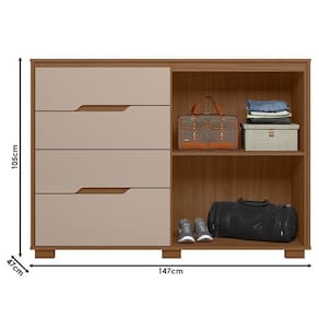 Começou a procurar móveis para seu quarto? Então apresentamos para você esta bela cômoda da linha Texas. Composta por duas portas com detalhes ripados adicionam um toque de requinte. Contando com quatro gavetas espaçosas equipadas com corrediças telescópicas, garante um deslizamento mais suave e seguro. Para completar, os pés em PVC garantem mais estabilidade e facilita na limpeza. Fabricado pela Moval, é desenvolvido em 100% MDP, sendo a escolha perfeita para quem deseja sofisticação e praticidade na organização quarto, aproveite!