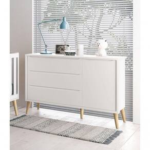 Contemplando um ar retrô com seus pés em madeira maciça no estilo palito, a Cômoda Sapateira Theo New - MóveisAqui possui um desing clean que combina com vários estilos de decoração. É ideal para a organização das roupinhas e acessórios do seu bebê, proporciona um super espaço para armazenamento e com divisória interna, para que a organização do dia-a-dia possa ser mais fácil. Possui puxadores, no modelo embutido, as aberturas ocorrem através de recortes no MDF que possibilitam o perfeito encaixe da mão para que possa abrir as portas e gavetas.