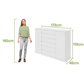 Produto em MDP; Fecho toque nas portas; Tampo de 25mm; 07 gavetas; Gavetas com corrediças telescópicas; 01 gaveta interna com chave; 02 portas com 05 nichos internos; Cabideiro em alumínio; Fundo das gavetas e costas em HDF. Vantagens/Benefícios: Produzido com equipamentos de alta tecnologia; Produto avaliado e aprovado por um rigoroso controle de qualidade; Fácil montagem e manual de montagem simplificado; Design minimalista; Gavetas ideais para acomodação das roupas em maiores quantidades; Acabamento com toque aveludado; Tampo de 25mm para maior resistência; Prateleiras internas para sapatos; Portas que se abrem facilmente; Gavetas grandes e espaçosas com corrediças telescópicas.