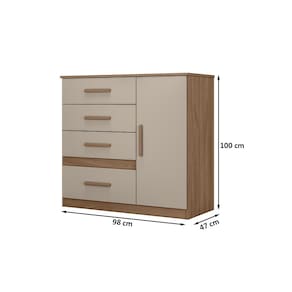 Características: Estrutura em MDP Acabamento em Pintura UV 04 Gavetas com corrediças metálicas 01 Porta com dobradiças metálicas Puxadores em MDF.