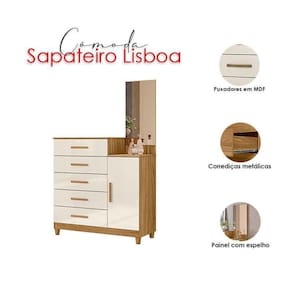 Cômoda Sapateiro Lisboa Freijó Off White com Espelho - Moval