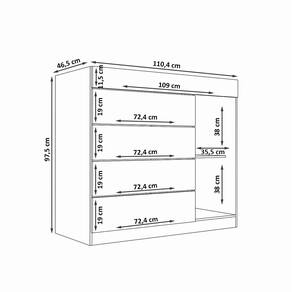 Dimensões: Altura: 97,3 cm Largura: 110,4 cm Profundidade: 46,8 cm